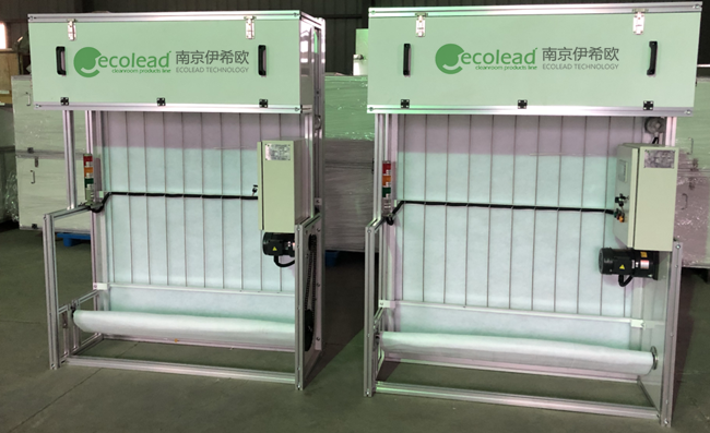 四川东安湖污水厂购买的自动卷绕式过滤器完成交货 自动卷绕式过滤器风量:23000 m³/h 设备数量:2套 合同签订日期:2021年4月 设备交付日期:2021年4月29日 产品简介 自动卷绕式过滤器实际上是一种新型空气过滤设备,它是通过过滤器前后压差转换为传感信号,实现了滤料更换的自动化设备。设备主体材料:优质铝型材;控制系统:自动和手动控制。电机:380V 100W ;滤料:卷绕式过滤器专用G3滤棉。 工作原理 主要是由滤料、传动系统及自动控制系统组成。 新过滤材料装在上料箱,当进风带有高浓度含尘空气通过卷绕式过滤器后,过滤器前后压差随滤尘增加而逐步上升;当过滤器阻力上升到设定的终阻力值时,压差开关开始动作,卷绕系统更新滤料;当达到卷帘时间,停止传动,更新滤料工作完毕,重新进行过滤。